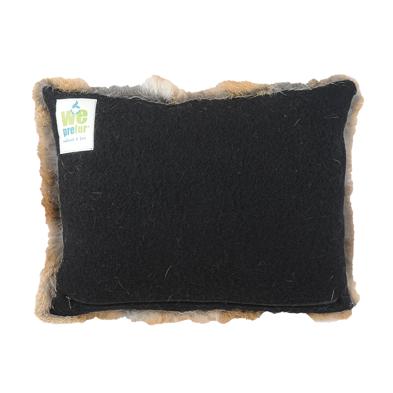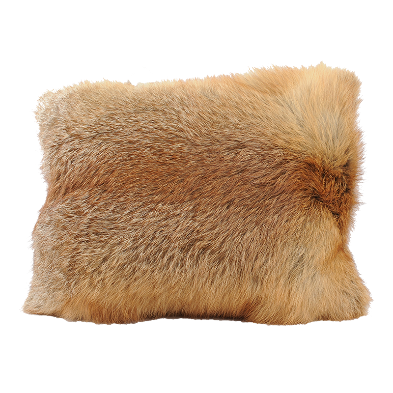 Eine Seite des Kissens ziert ein echtes Rotfuchsfell, die andere Seite besteht aus robustem Walkloden.